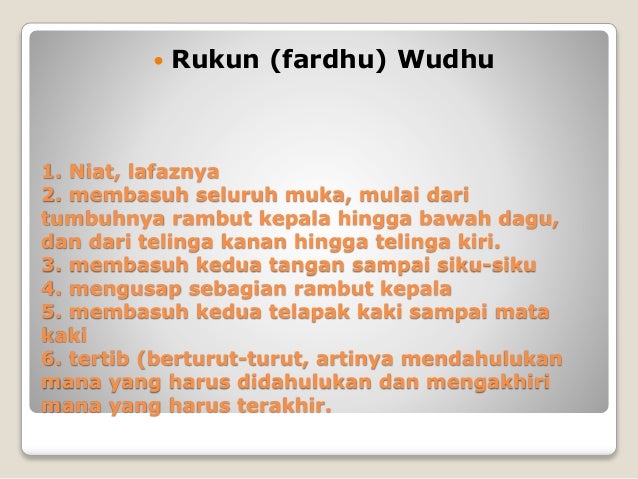 Syarat sahnya wudhu Sumber : www.slideshare.net